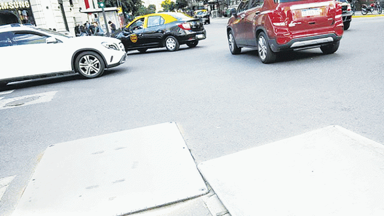 Los grandes chapones metálicos para tapar baches de manera provisoria, aunque la provisionalidad suela durar meses, forman parte de los nuevos obstáculos urbanos que deben atravesar los conductores en la ciudad.